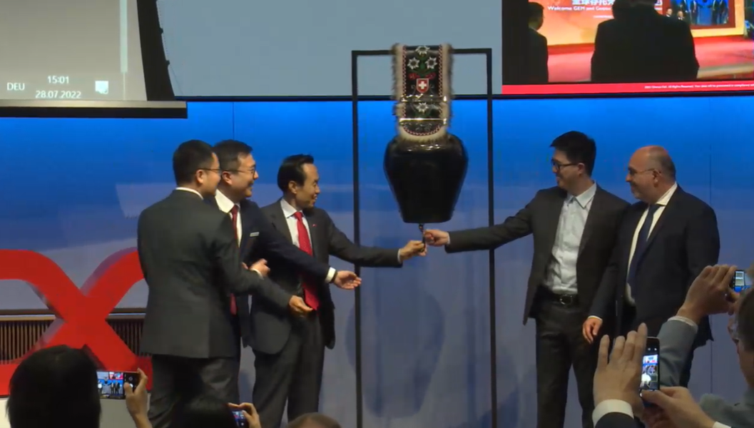 7月28日晚9點(瑞士時間7月28日下午3點),瑞士證券交易所正式啟動“中瑞股市互通”的 GDR 部分,作為首批中國公司之一,杉杉股份GDR正式登陸瑞交所。中國駐瑞士大使王世廷、瑞交所Tom Zeeb先生(Head Exchanges)出席儀式,杉杉股份董事長鄭永剛等中國公司代表出席儀式并發(fā)言。同一時間,杉杉科技董事長李鳳鳳在上海證券交易所同步敲鑼。