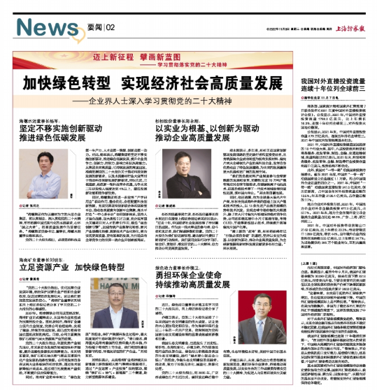 10月16日至22日,中國共產(chǎn)黨第二十次全國代表大會在北京召開。杉杉控股董事局主席、杉杉股份董事長鄭永剛深入學(xué)習(xí)貫徹黨的二十大精神,并接受上海證券報采訪。他表示:“過去十年,中國經(jīng)濟社會發(fā)展取得了舉世矚目的成就。作為這一偉大事業(yè)的參與者、奮斗者和見證者,我們深感驕傲和自豪。黨的二十大報告為我們奮進(jìn)新征程、建功新時代提供了鮮明的行動指南。我們要用實際行動學(xué)習(xí)好、領(lǐng)會好、貫徹好、落實好黨的二十大精神,奮力推動公司更高質(zhì)量發(fā)展。”