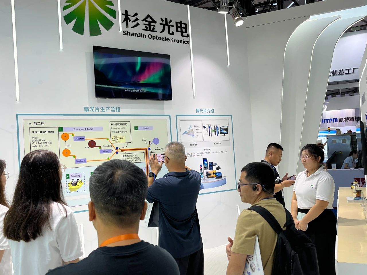 杉金光電總裁朱志勇受邀出席展會(huì)開幕式并剪彩此次參展,杉金光電帶來(lái)了高端LCD偏光片、OLED偏光片、中小型偏光片、環(huán)保型溶劑等領(lǐng)域的多項(xiàng)極具競(jìng)爭(zhēng)力的產(chǎn)品,還設(shè)立了偏光片互動(dòng)體驗(yàn)區(qū),讓觀眾更加清晰、直觀地了解到偏光片的功能和成像原理,吸引了眾多觀眾駐足。