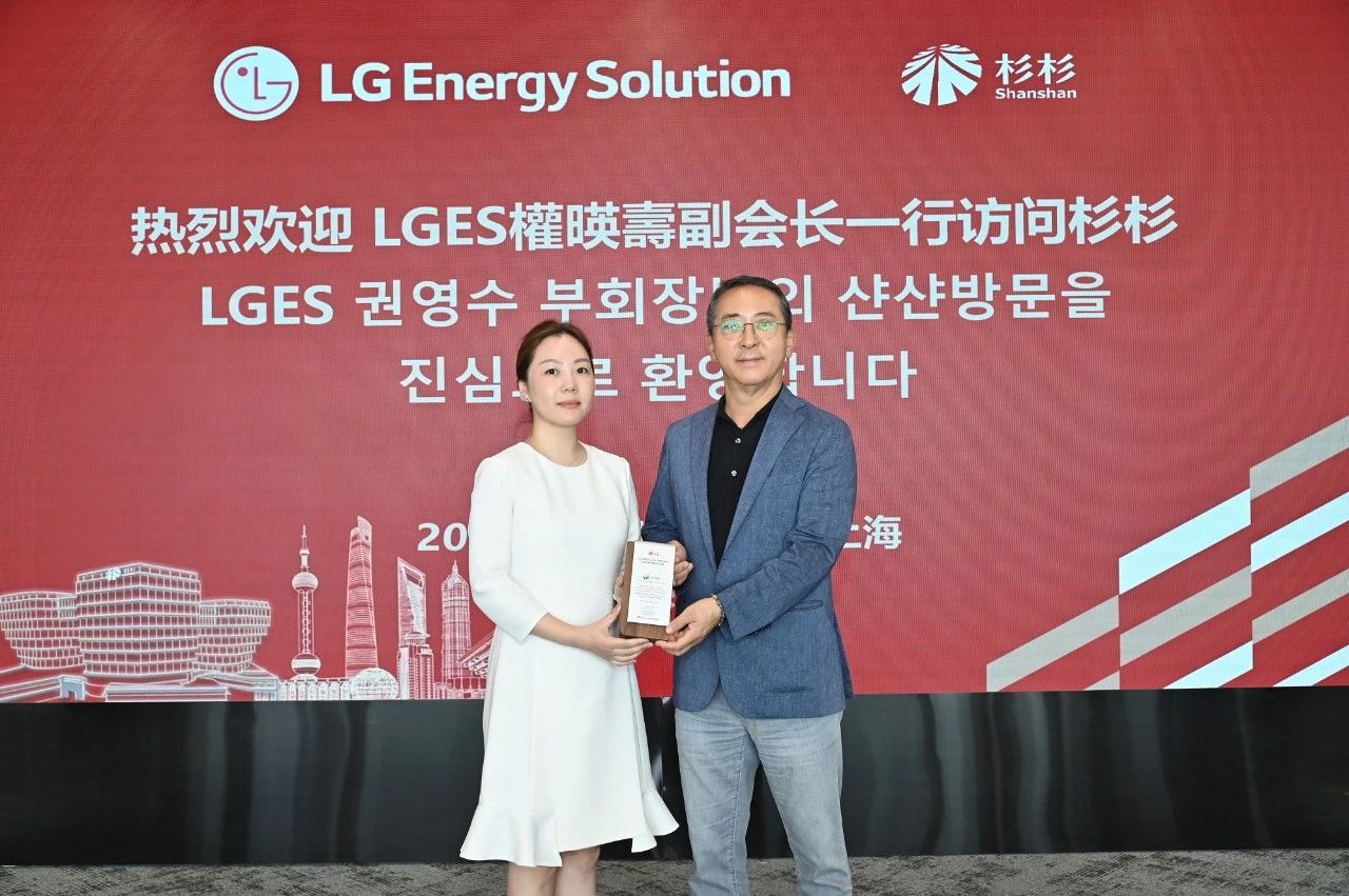 會后,權暎壽為杉杉科技頒發(fā)LG2023年優(yōu)秀合作伙伴獎,以感謝杉杉科技及團隊對LGES發(fā)展作出的貢獻。