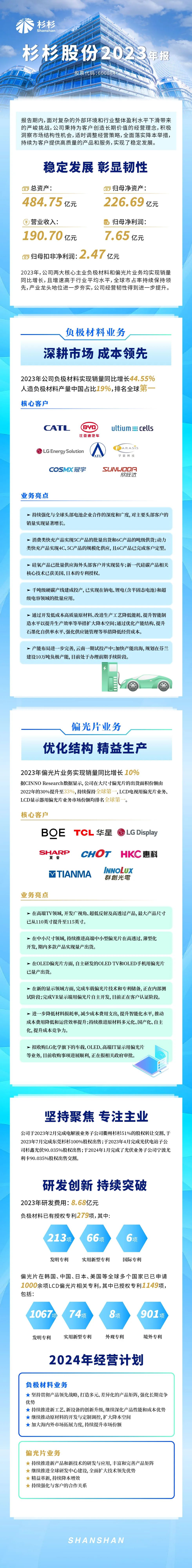 一圖讀懂杉杉股份2023年報 2024年04月25日 報告期內,面對復雜的外部環(huán)境和行業(yè)整體盈利水平下滑帶來的嚴峻挑戰(zhàn),公司秉持為客戶創(chuàng)造長期價值的經(jīng)營理念,積極洞察市場結構性機會,適時調整經(jīng)營策略,全面落實降本舉措,持續(xù)為客戶提供高質量的產(chǎn)品和服務,實現(xiàn)了穩(wěn)定發(fā)展。