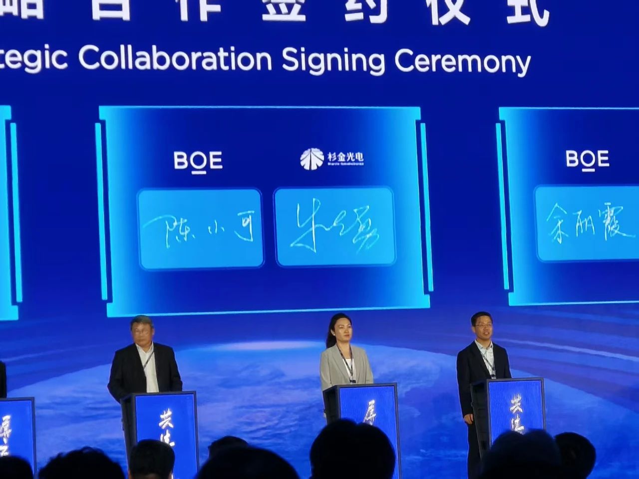 這是杉金光電自2023年以來,第二次問鼎該獎項,標志著杉金光電與京東方合作從"戰(zhàn)略互補"邁向"技術共生"的新紀元。同期,雙方簽署深化戰(zhàn)略合作協(xié)議,共同繪制"屏之物聯(lián)"的產(chǎn)業(yè)藍圖。